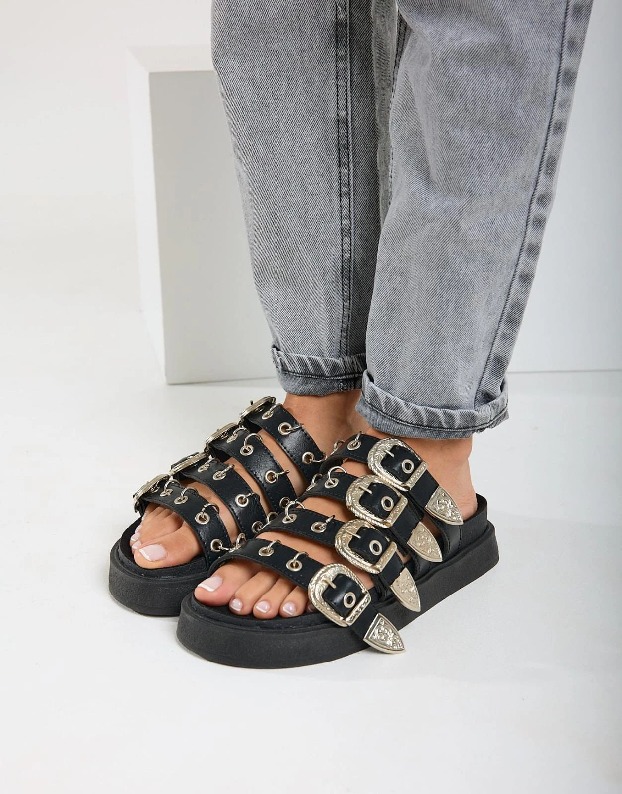 Sandalias en cuero ecológico y herrajes acerados importados excelente calidad.